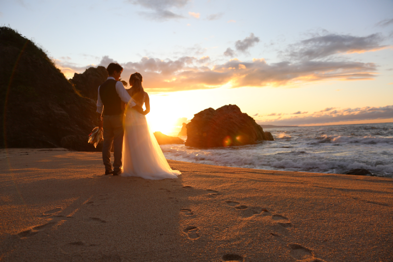 初冬から夕陽は灯台側に沈むので、キレイな夕陽をバックにした撮影には向きません。この時期に海へ沈む夕陽を背景にした撮影は別海岸をお選びください。